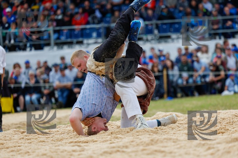 Beschreibung 250525, Seeländisches Schwingfest Detligen, von Weissenfluh Kilian, Hasliberg Hohfluh (o.) - Röthlisberger Simon Hasle b. Burgdorf (u.) @barbara.loosli