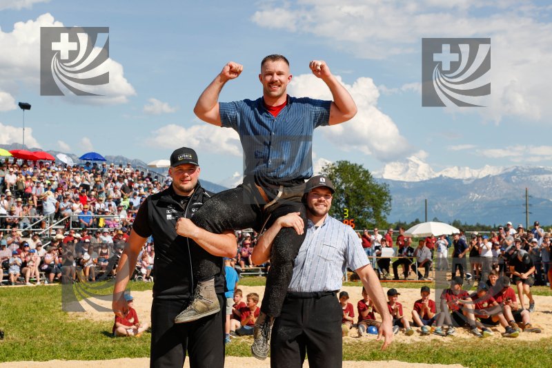 Beschreibung 250531, Mittelländisches Schwingfest Uetendorf, Festsieger, Staudenmann Fabian (Guggisberg)